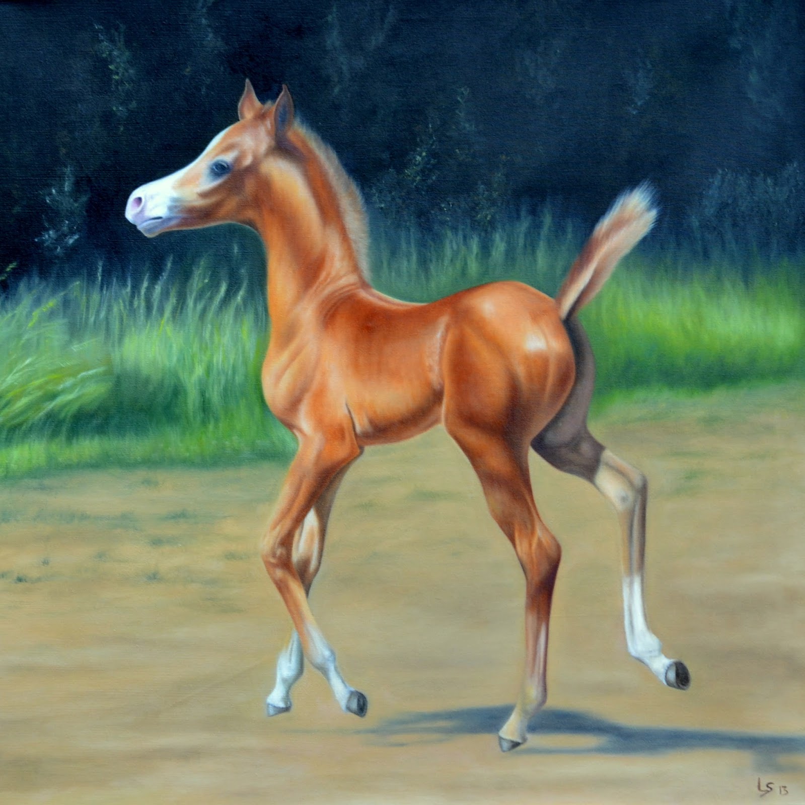 En mi obra se unen mis dos pasiones los caballos y el arte. No hay otro tema que me resulte tan motivador y cautivante. He compartido toda mi vida con estos hermosos seres. El constante contacto con ellos me permite conocer sus formas, movimientos, sentimientos y expresiones. La mayoria de mis trabajos tienen como modelos a caballos reales a los cuales conozco personalmente y se han destacado a nivel deportivo, Entre los temas que mas he pintado estan los potrillos por los cuales tengo especial predileccion ya que cada nueva vida es un verdadero milagro digno de ser admirado. Si es un retrato por encargo me gusta empezar conociendo al caballo y sacar mis propias fotos.